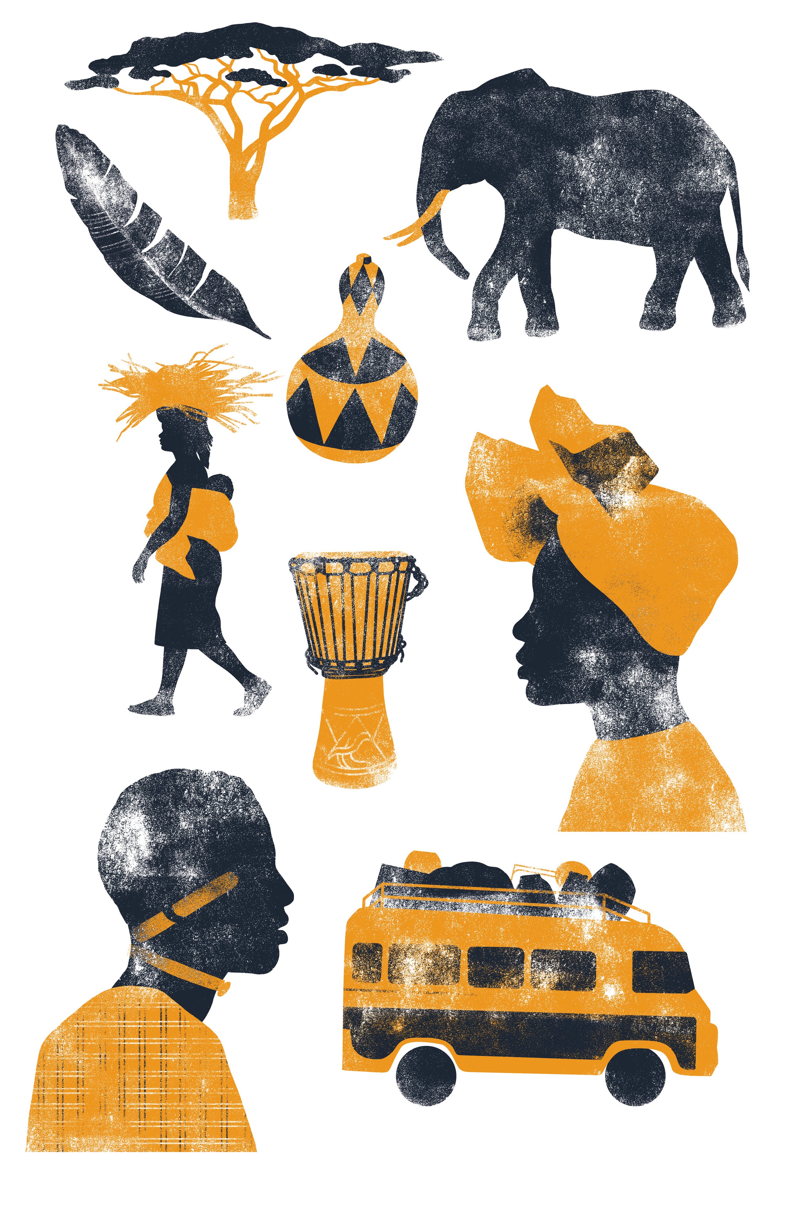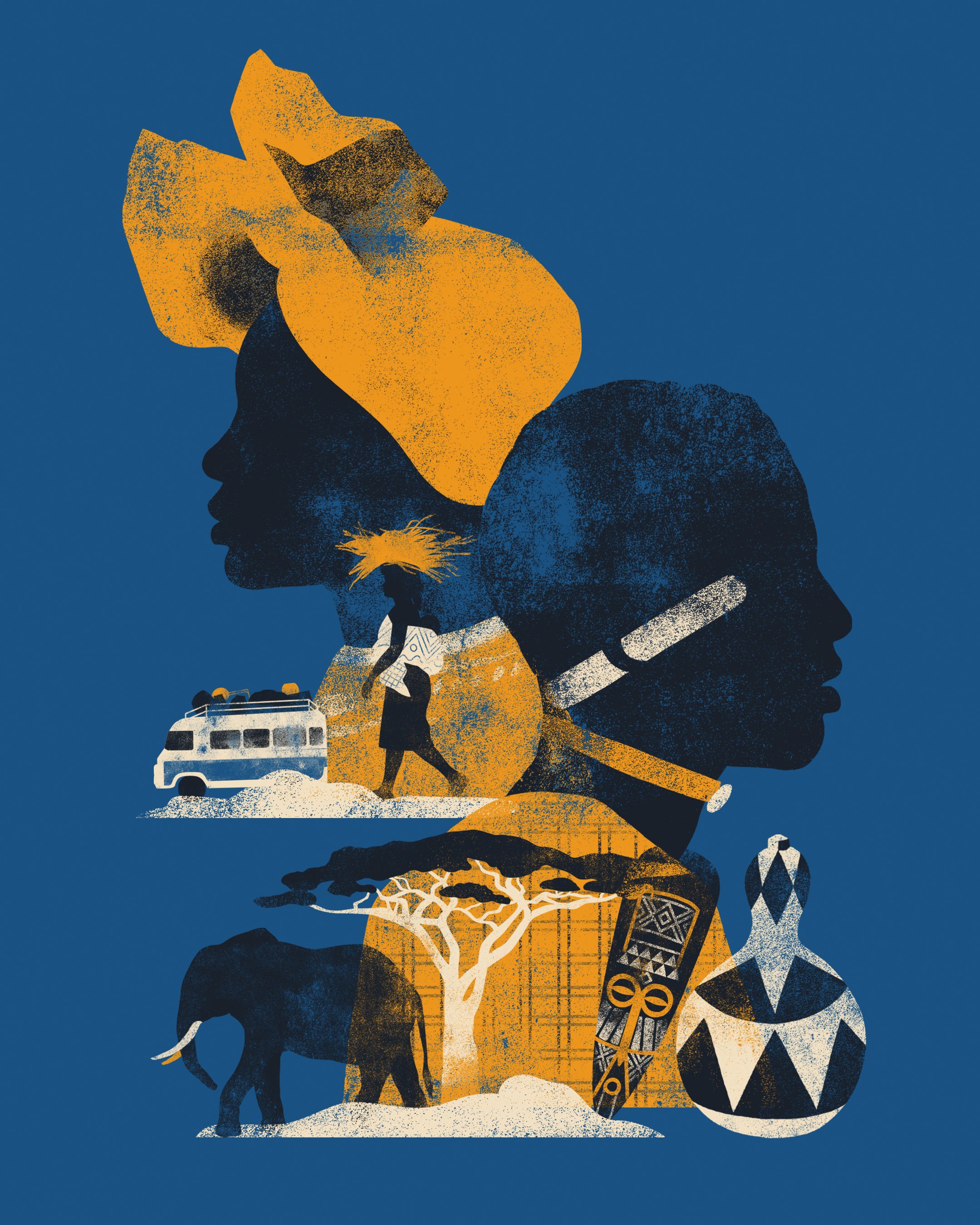 Book cover illustration for Océano África by Xavier Aldekoa. Published in Spain by Ediciones Península, Grupo Planeta.